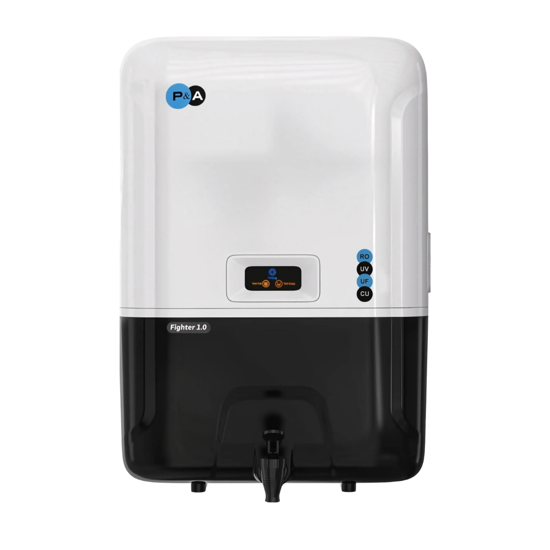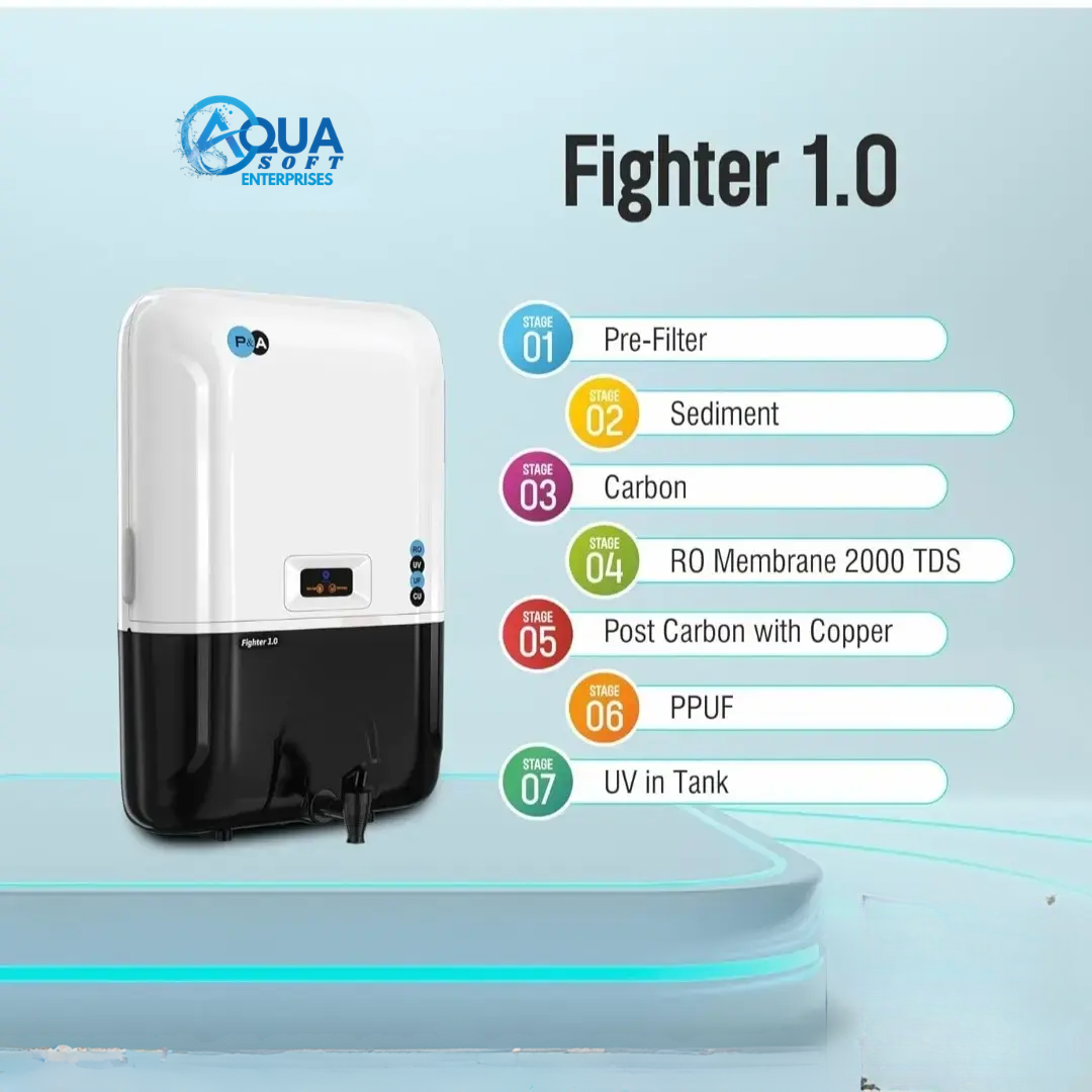 Description Key Features: RO + UV + UF Filtration: Fighter 1.0 uses reverse osmosis (RO), ultraviolet (UV) and ultrafiltration (UF) with timely water purification combinations. 99.99% of Contaminants are Removed: Convenience for about every person that the 3rd degree filtration lets you eliminate 99.99% of any contamination thus making every drop of water completely free from any possible impure nourishment. High Flow Rate: Fighter 1.0’s high flow rate ensures available demand for the curative needs of the household, and instills a continuous supply of revitalized water. Compact and Stylish Design: The elegant and space saving design of the purifier allows it incorporation in any room kitchen or utility. Low Maintenance: Fighter 1.0 not only works great but also it saves time in maintenance with quick cartridge changes and cleaning. Benefits: Safe and Healthy Drinking Water: Safeguard your family’s health by consuming only safe drinking water Get Clean and Odorless Water: Have a simple and enjoyable life and drink clean and odor-free water devoid of chlorine as well as other contaminants.