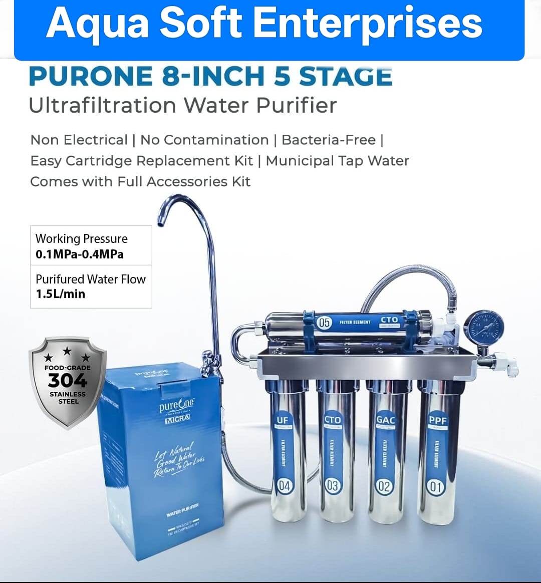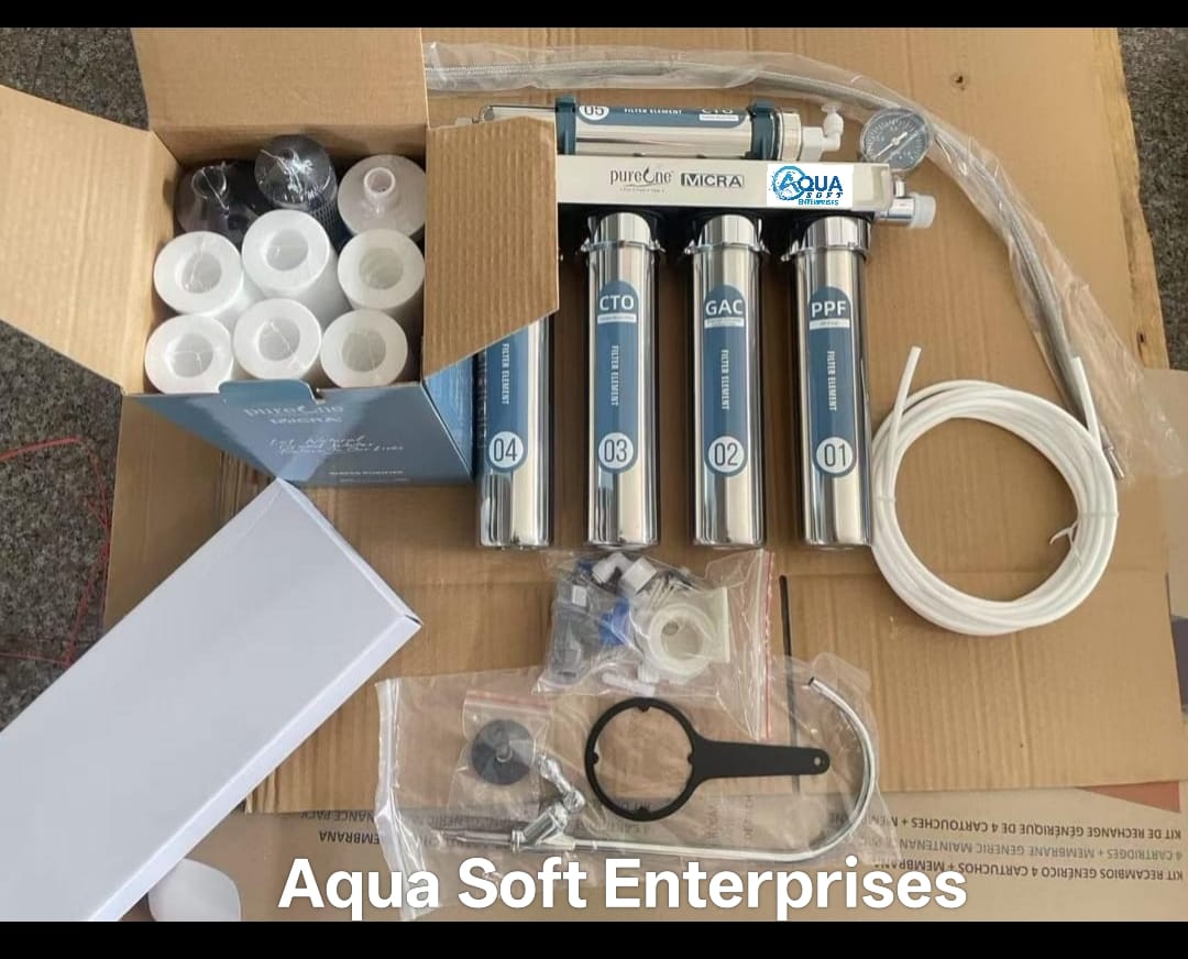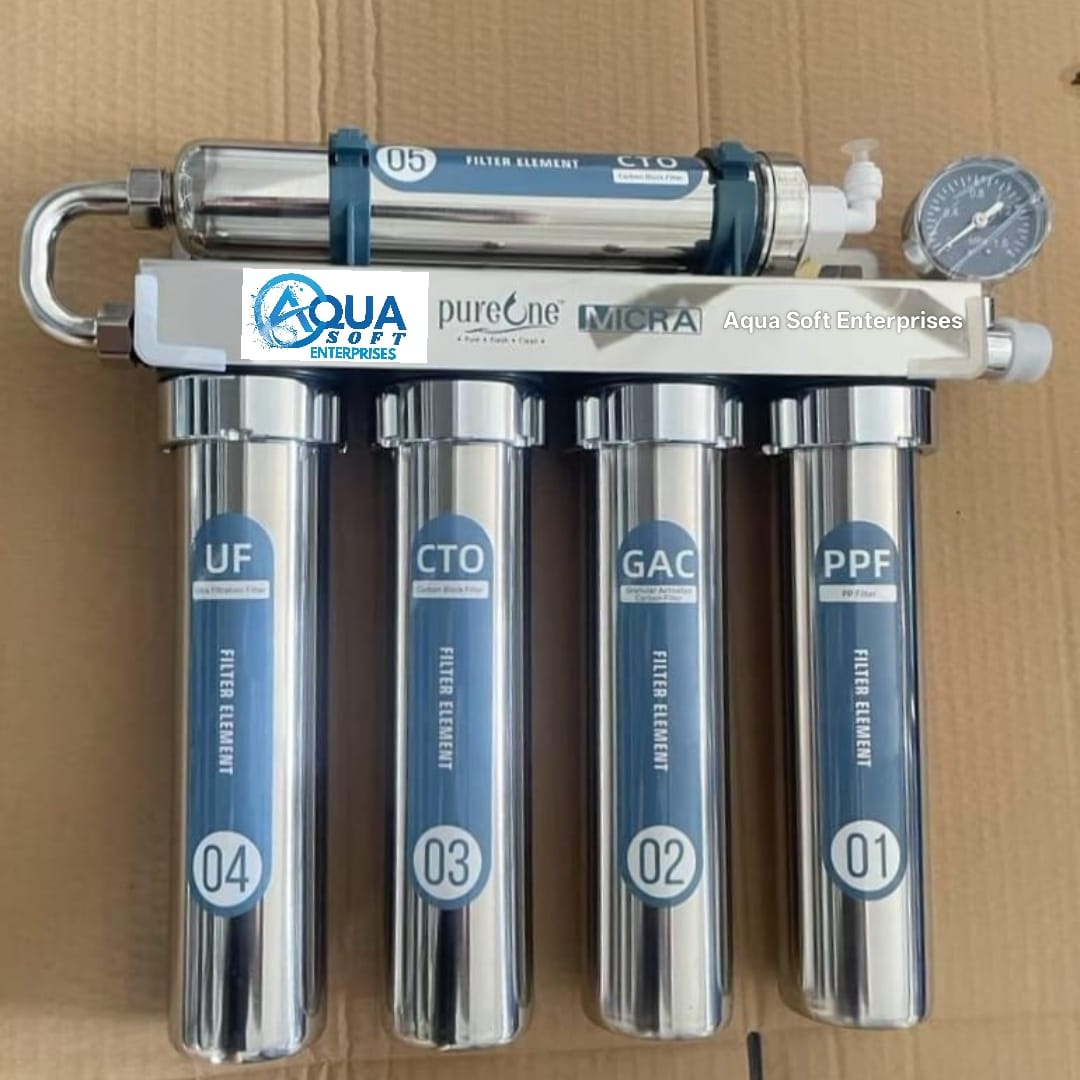 Upgrade your water purification with the PureOne Micra 8-Inch 5 Stage Ultrafiltration Water Purifier by Aqua Soft Enterprises.