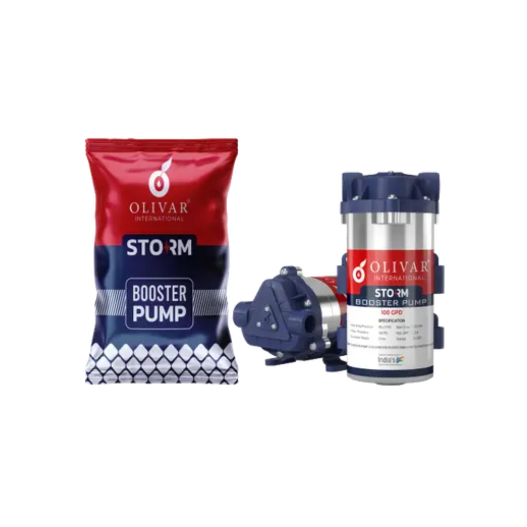 The Olivar 100 GPD Storm Booster Pump is designed to improve water pressure for reverse osmosis (RO) systems with a capacity of up to 100 gallons per day (GPD). It boosts the efficiency of RO filtration, enhancing water quality and ensuring optimal performance, especially in areas with low pressure. Featuring a robust and corrosion-resistant design, the Storm Booster Pump is durable and suitable for long-term residential use. Its energy-efficient motor provides quiet operation while minimizing power consumption. Easy to install and maintain, this pump ensures consistent and reliable water purification for everyday needs.
